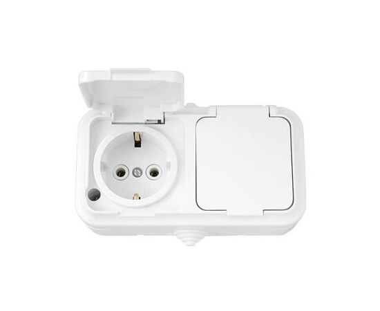 Розетка 2-ая (открытая, б/з, брызг. защ.)белая, Пралеска Аква, BYLECTRICA