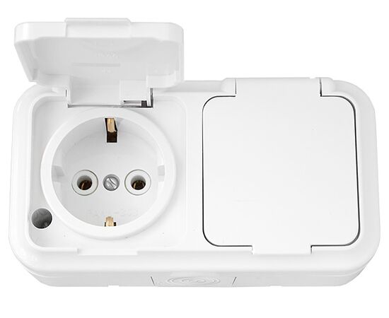 Розетка 2-ая (открытая, с/з, брызг. защ.) белая, Пралеска Аква, Bylectrica