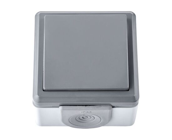 Выключатель 1 клав. (открытый, 10А, струезащ.) серый, Пралеска Аква, BYLECTRICA