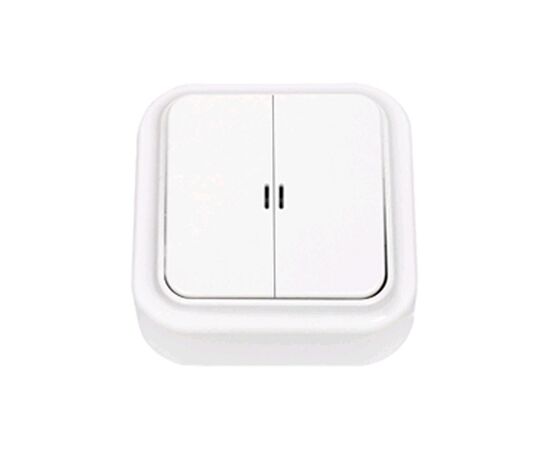 Выключатель 2 клав. (открытый, 10А) со световой индикацией, белый, Пралеска, BYLECTRICA