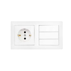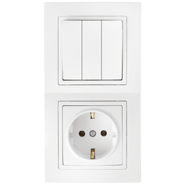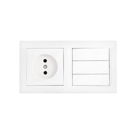 Блок выкл. 3 клав. + розетка (скрытая, с/з) белый, Мастер, BYLECTRICA