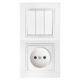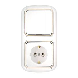 Блок выкл. 3 клав. + розетка (скрытая, б/з) белая, Стиль, Bylectrica