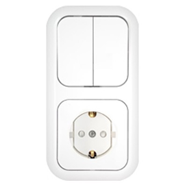 Блок выкл. 2 клав. + розетка (скрытая, с/з) белая, Стиль, Bylectrica