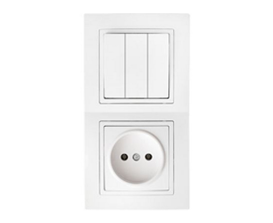Блок выкл. 3 клав. + розетка (скрытая, б/з) белый, Уют, BYLECTRICA