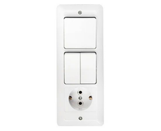 Блок выкл. 3 клав. + розетка (скрытая, с/з) белая, Паритет, BYLECTRICA (3В-РЦ-651)