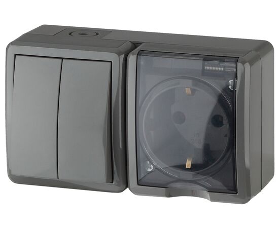 Блок розетка+выключатель двойной IP54, 16А(10АХ)-250В, о/у, серый ЭРА