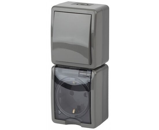 Блок розетка+выкл. верт. 10(16)А-250В, IP20, о/у, серый