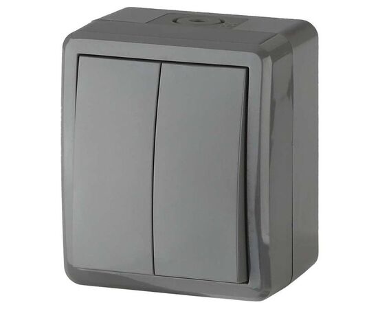 Выключатель двойной IP54, 10AX-250B,о/у, Эра Эксперт, серый ЭРА