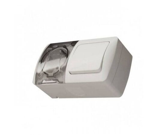 Блок выключатель 1-кл и розетка с крышкой с/з,наружная, IP54,EL-BI, Eva