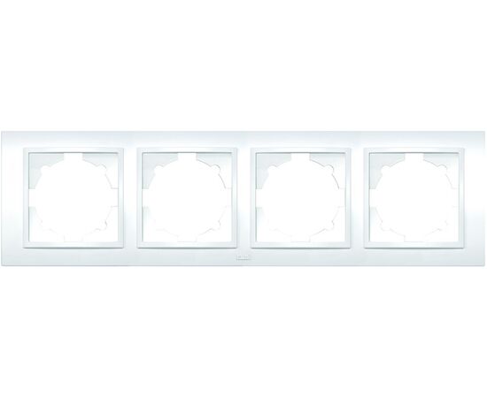 Рамка 4-местная горизонтальная/вертикальная. Предназначена для монтажа электроустановки. Цвет - белоснежный.