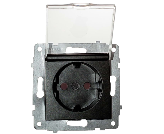 Розетка с/з с крышкой,черный,механизм, Ovivo