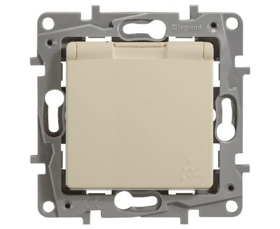 Etika - Розетка 2P+E нем. стд. с крышкой, со шторками IP44 (сл.кость) 672332-00.00-00.00-00.01