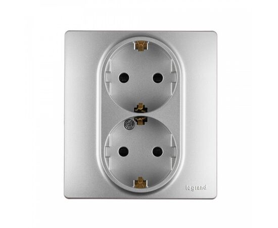 Розетка 2x2P+E нем. стд. алюминий, Etika