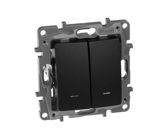 Выключатель двухклавишный с подсветкой (антрацит), Etika