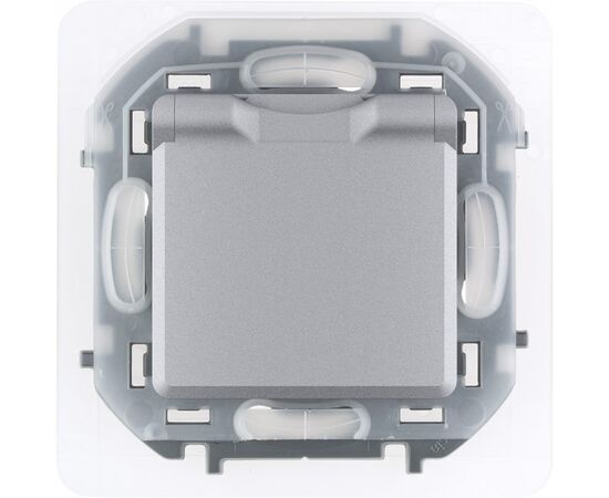 Inspiria - Розетка 2P+E нем. стд. с крышкой, со шторками IP44 (алюминий)