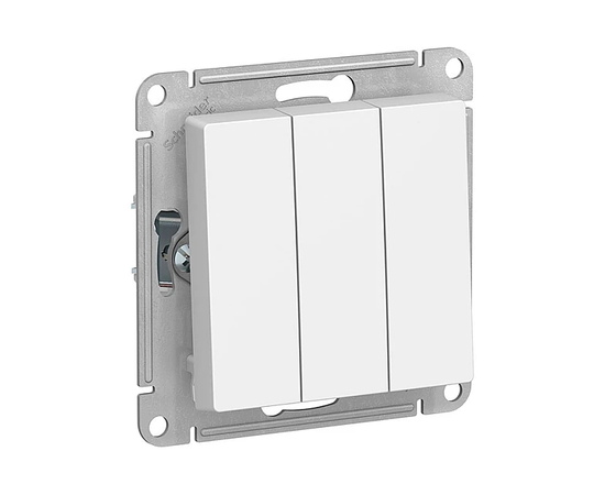Механизм Systeme Electric (ранее Schneider Electric) серии AtlasDesign в цвете белый выключателя 3-клавишного подходит для сетей 250 В, на ток 10 А.
