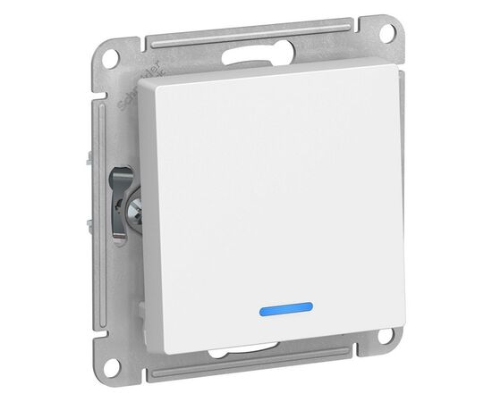 Механизм выключателя 1-клавишного с подсветкой Systeme Electric (ранее Schneider Electric) серии AtlasDesign в цвете белый подходит для сетей 250 В, на ток 10 А. Пластик с ионами серебра в белом цвете обеспечивает антибактериальный эффект. Благодаря светодиодной подсветке синего цвета изделие легко найти в темноте. Лицевые детали из качественного ABS-пластика, устойчивого к царапинам и УФ-излучению. Усиленные прямые монтажные лапки для лучшей фиксации механизма в монтажной коробке.
