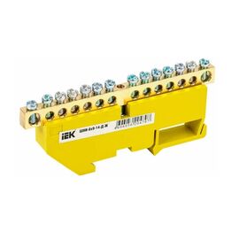 Шина "PE" "земля" в желтом изоляторе на DIN-рейку 8х12мм 14 групп TDM