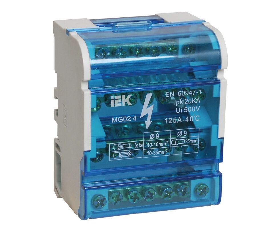 Шины выполнены из высококачественной латуни, изолирующая задняя панель и прозрачная защитная крышка выполнены из самозатухающего пластика.