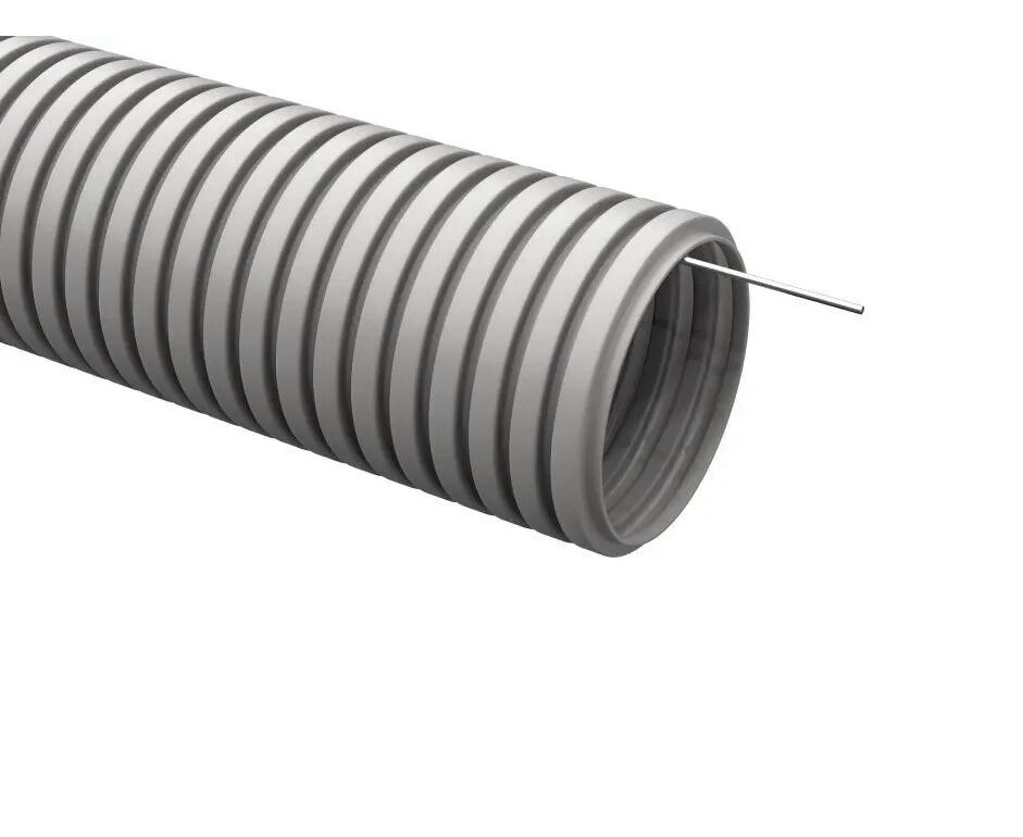 труба гофрированная с протяжкой CTG20-20-K41-100I диаметром 20 мм, внутренним диаметром 14,2 мм, внешним диаметром 20 мм от производителя IEK - необходимый элемент для прокладки силовых и слаботочных линий в помещениях. Угол прокладки может быть любым, что весьма удобно при выполнении монтажа в жилых домах, отличающихся большой площадью, давая возможность экономить на объеме приобретенных гофротруб. Наличие протяжки уменьшает время работ в несколько раз. Защита класса IP 55 гарантирует защиту от попадания сторонних предметов. Имеет большой температурный диапазон работы от -15 до 60°C. Труба выполнена из самозатухающего материала - поливинилхлорид (PVC), в цвете - серый, характеризуется отличной износоутойчивостью, долгим периодом службы, предохраняет от возгорания при коротком замыкании и распространения пламени по трубе.
