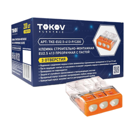 Клемма строительно-монтажная, СМК 2273-243 EU2.5 413 3-проводная с пастой TOKOV ELECTRICA TKE