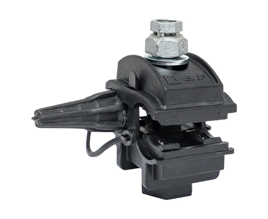 Зажим типа p-2x-95 предназначен для герметичного электрического соединения ответвительной линии СИП с магистралью. Контакт с изолированным проводом обеспечивается прокалыванием изоляции. При достижении момента, необходимого для создания надежного электрического контакта проводов, происходит срыв головки болта. Контактные пластины изготовлены из алюминиевого сплава. На прокалывающие элементы нанесена контактная смазка. Болт изолирован от контактных деталей зажима. Зажим устойчив к ультрафиолетовому и солнечному излучению, высоким и низким температурам, коррозии и агрессивным атмосферным воздействиям.