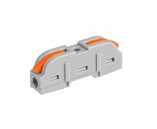 - Проходная конструкция: два зажима (1+1), что позволяет подключать проводники с разных сторон.