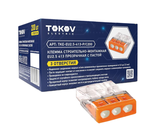 Клемма строительно-монтажная, СМК 2273-243 EU2.5 413 3-проводная с пастой TOKOV ELECTRICA TKE