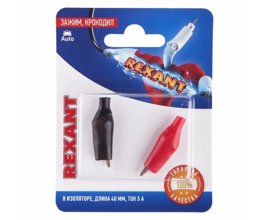 Зажим "крокодил" 5А 40мм в изоляторе REXANT представляет собой электромеханическое устройство, предназначенное для оперативного соединения или разъединения контакта проводов при выполнении измерительных работ или монтажа электрических и слаботочных сетей. Зажим получил свое название за схожесть с челюстями крокодила. Состоит он из двух фигурных деталей с «крокодильими» зубцами, скрепленных серединами специальным штифтом и способных поворачиваться на некоторый угол вокруг оси соединения.