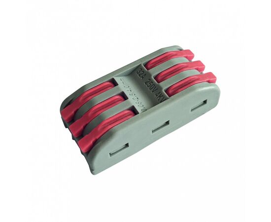 Строительно-монтажная клемма с рычажками проходная 3 полюса, 8 шт.