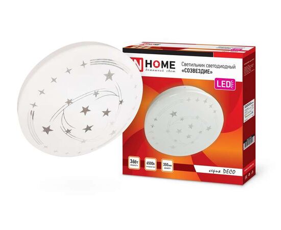 Светодиодный светильник серии DECO от компании In Home с динамичным рисунком в виде хоровода созвездий станет удачным дополнением жилого интерьера. Линейка светильников СОЗВЕЗДИЕ представлена в диапазоне мощностей от 12 Вт до 48 Вт, что позволяют подобрать оптимальный осветительный прибор, в зависимости от конфигурации и габаритов помещения. Светодиодные светильники СОЗВЕЗДИЕ серии DECO предназначены для внутреннего освещения жилых помещений, подъездов и сферы ЖКХ, офисных и административных учреждений, магазинов, а также холлов, коридоров, лестничных пролётов, подсобок и других помещений вспомогательного назначения. Современные светильники серии DECO, работающие на основе последнего поколения светодиодов, обеспечивают яркий равномерный световой поток при максимальной экономии электроэнергии. Отсутствие пульсации гарантирует сохранность здоровья глаз. Светодиодные светильники являются одним из самых экологически безвредных источников света и не требуют специальной утилизации и переработки.