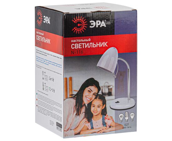 Настольный светильник ЭРА N-116-Е27-40W с цоколем Е27 компактного размера для удобного размещения на столе. Может использоваться с лампой накаливания, компактной люминесцентной лампой (КЛЛ) или светодиодной (LED) лампой. У светильника металлические стойка и плафон, выключатель на основании. Высота расположения плафона регулируется сгибающейся стойкой, направление света - наклоном и поворотом плафона в любом направлении.