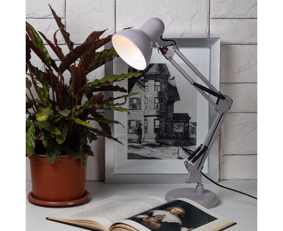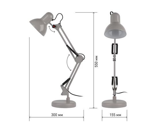 Настольный светильник ЭРА N-214-E27-40W-GY классического дизайна может использоваться с разными источниками света - лампой накаливания, компактной люминесцентной лампой (КЛЛ) или светодиодной (LED) лампой. Выключатель на проводе. Устойчивое основание. Высота плафона регулируется двухсекционной сгибающейся стойкой, направление света - поворотом и наклоном плафона в любом направлении.