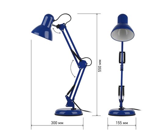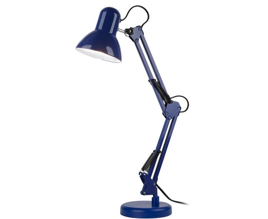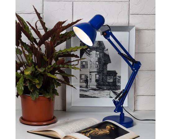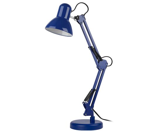 Настольный светильник ЭРА N-214-E27-40W-BU классического дизайна может использоваться с разными источниками света - лампой накаливания, компактной люминесцентной лампой (КЛЛ) или светодиодной (LED) лампой. Выключатель на проводе. Устойчивое основание. Высота плафона регулируется двухсекционной сгибающейся стойкой, направление света - поворотом и наклоном плафона в любом направлении.