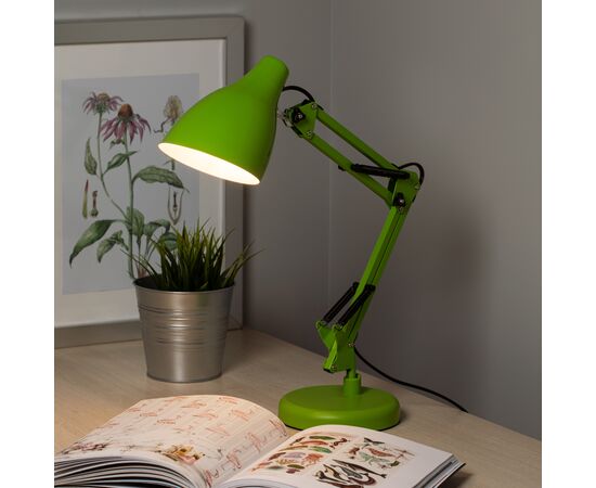 - Функциональные преимущества: Трендовый дизайн и цвета. Металлические стойка и плафон. Выключатель на проводе. Высота расположения плафона регулируется сгибающейся стойкой. Направление света регулируется наклоном и поворотом плафона в любом направлении. Устойчивое основание.