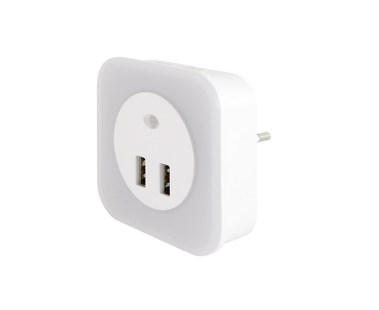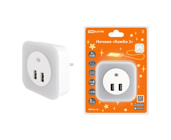 Ночник "Комбо 3", 8LED, 80 лм/Вт, дат. освещ., 2хUSB 2,1 А,220 В, TDM