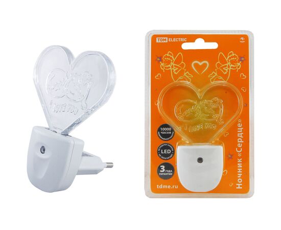 Ночник "Сердце" с датчиком света, светодиодный, 0.3 Вт 220 В TDM (SQ0357-0008)
