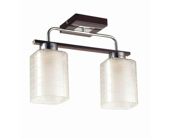 Люстра потолочная 2 рожка. Двойные плафоны чередуют матовое и прозрачное стекла. Современный стиль. Высокое качество. Площадь освещения 6 кв.м.