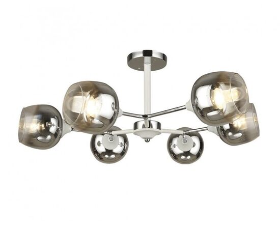 Светильник предназначен для освещения жилых помещений. Основание-металл. Декоративные элементы - стекло. Цвет -белый,хром. Тип патрона-Е27.