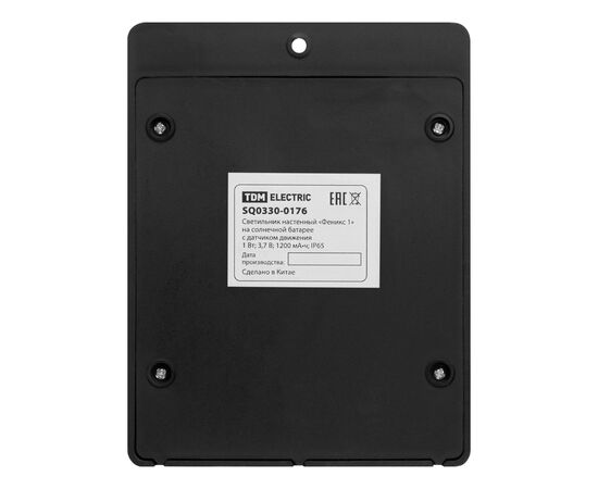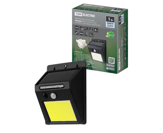 Светильник настенный "Феникс 1" на солн. батарее с датч. движ., 1 Вт, IP65, пластик, черн., TDM