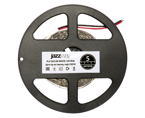 Лента светодиодная PLS-2835 (9.6 Вт/м, 960 Лм/м, 6500К, IP20, 12В (5 м в уп.) JAZZWAY