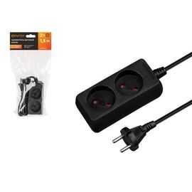 Удлинитель 1,5м (2 роз., 2,2кВт, б/з, ПВС 2х0,75) черный, Юпитер
