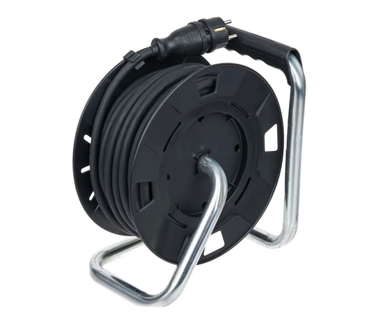 Электрический удлинитель на катушке необходим там, где осуществляется работа с электрическим оборудованием, находящимся на большом расстоянии от сети электропитания