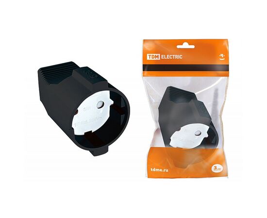 Кабельная розетка 2П б/з с з/ш 10А 250B черная TDM