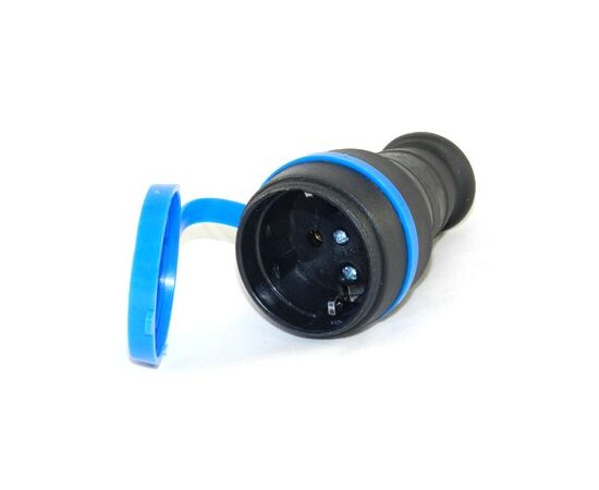 Штепсель FAR F49 с/з розетка кабельная с крышкой каучук, черная с синим