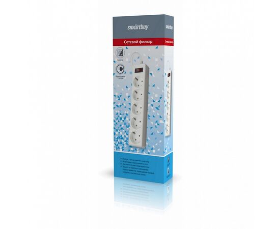 Сетевой фильтр Smartbuy, 10А, 2200 Вт, 5 гнезд, без з/ш, земля, ПВС 3х0,75, 5м, белый