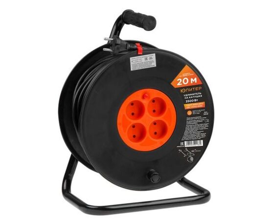 Удлинитель на катушке 20м (4 роз., 3,5кВт, б/з, ПВС 2х1,5) Юпитер