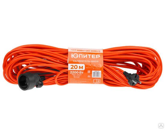 Удлинитель-шнур 10м (1 роз., 2,2кВт, б/з, ПВС 2х1) Юпитер