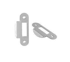 Ответная планка для установки на короб межкомнатной двери. Имеет 2 отверстия под ригели замка. Заход с загибом предохраняет дверное полотно от повреждения при контакте с ригелем замка. Материал - сталь, покрытие - гальваническое многослойное. Ответную планку подбирайте исходя из размеров замка....