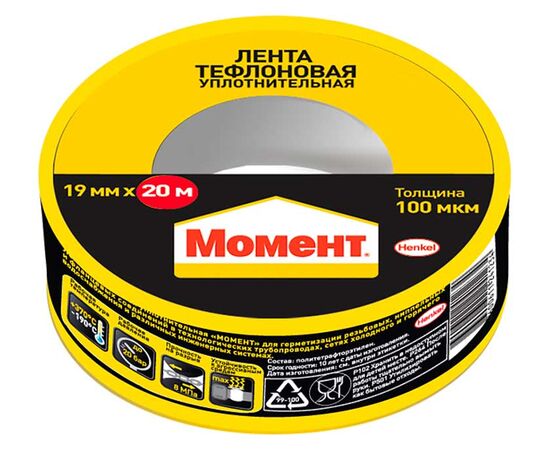 Момент лента уплотнительная тефлоновая 2230214 предназначена для быстрой, надёжной и удобной герметизации труб и резьбовых соединений при рабочей температуре от -190 до +370 градусов. Состоит на 100% из политетрафторэтилена, проста в применении, используется при сантехнических работах. Может применятся вместо мастик и анаэробных герметиков для герметизации резьбовых соединений труб с питьевой водой.